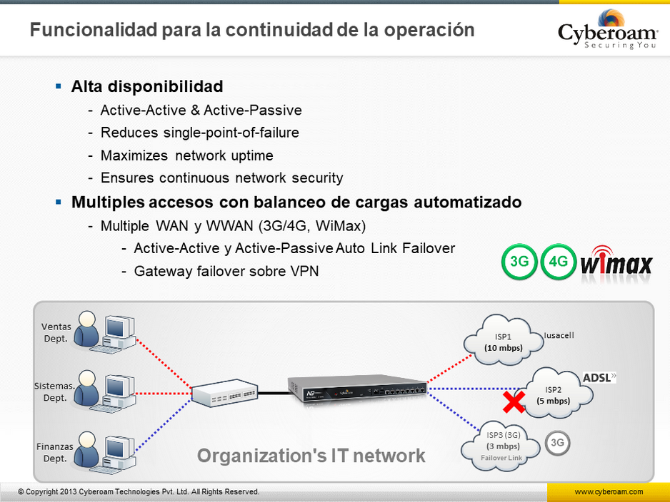 Avanzada Seguridad en Redes –Cyberoam ofrece una avanzada seguridad en redes para brindarle a las empresas continuidad, rapidez en subida, crecimiento rápido, cumpliendo los requerimientos de las empresas con las siguientes compatibilidades: